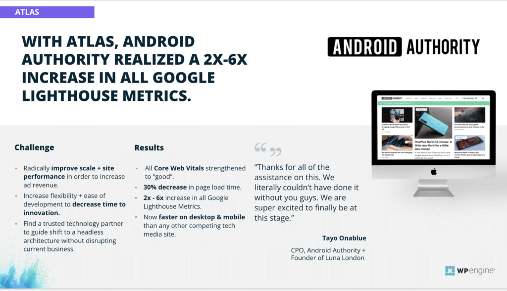 Android Authority, the largest independent publication dedicated to Android OS, came onboard with WP Engine in 2019. As their website continued to grow, Android Authority’s digital teams began evaluating Headless WordPress as a way to ensure they were building for the future with options for scalability and performance that could meet their growing demands.